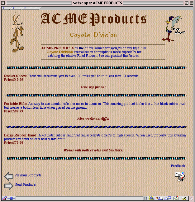 2. The heading "ACME Products" you see at the top of the page is not